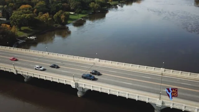 The Anoka-Champin Bridge: Original steel bridge built in 1884 and the new bridge built in 1929.