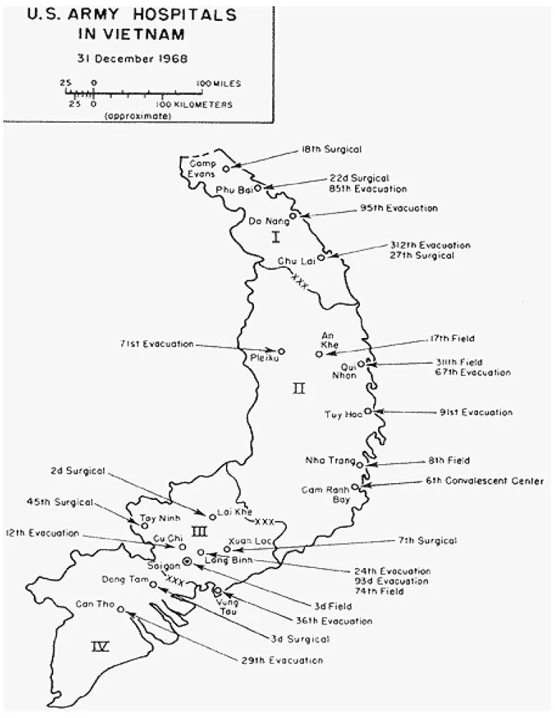 When she received her orders for Vietnam, MaryLu was given an option: she could either serve by the ocean or in the mountains. She chose the latter and was sent to the 71st Evac Hospital in Pleiku, nestled amongst the Central Highlands of South Vietnam. Can you find it on the map?